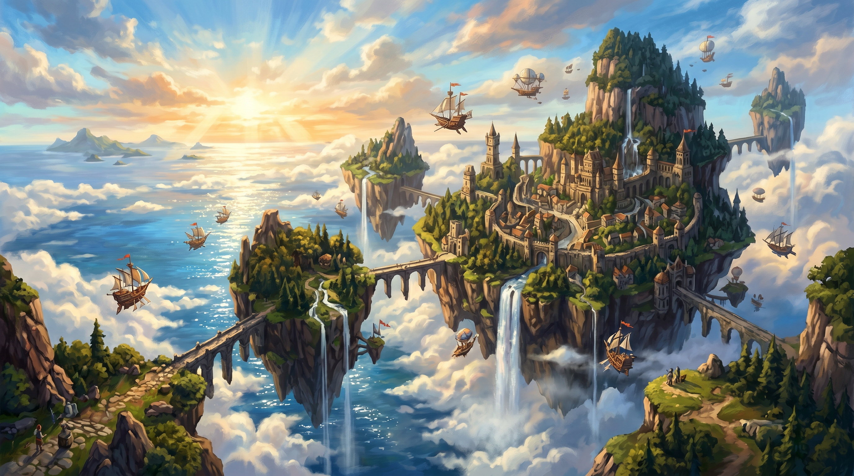 Floating Sky Islands — AI image generated with GPT Image 2. concept-art,fantasy,painterly,environment